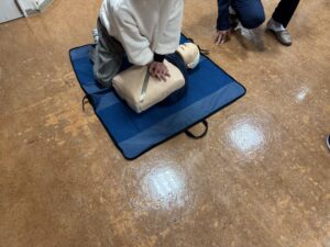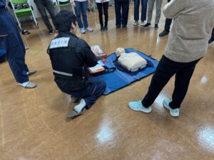 駒岡消防の方にお越し頂き、色々とレクチャーをいただきながら