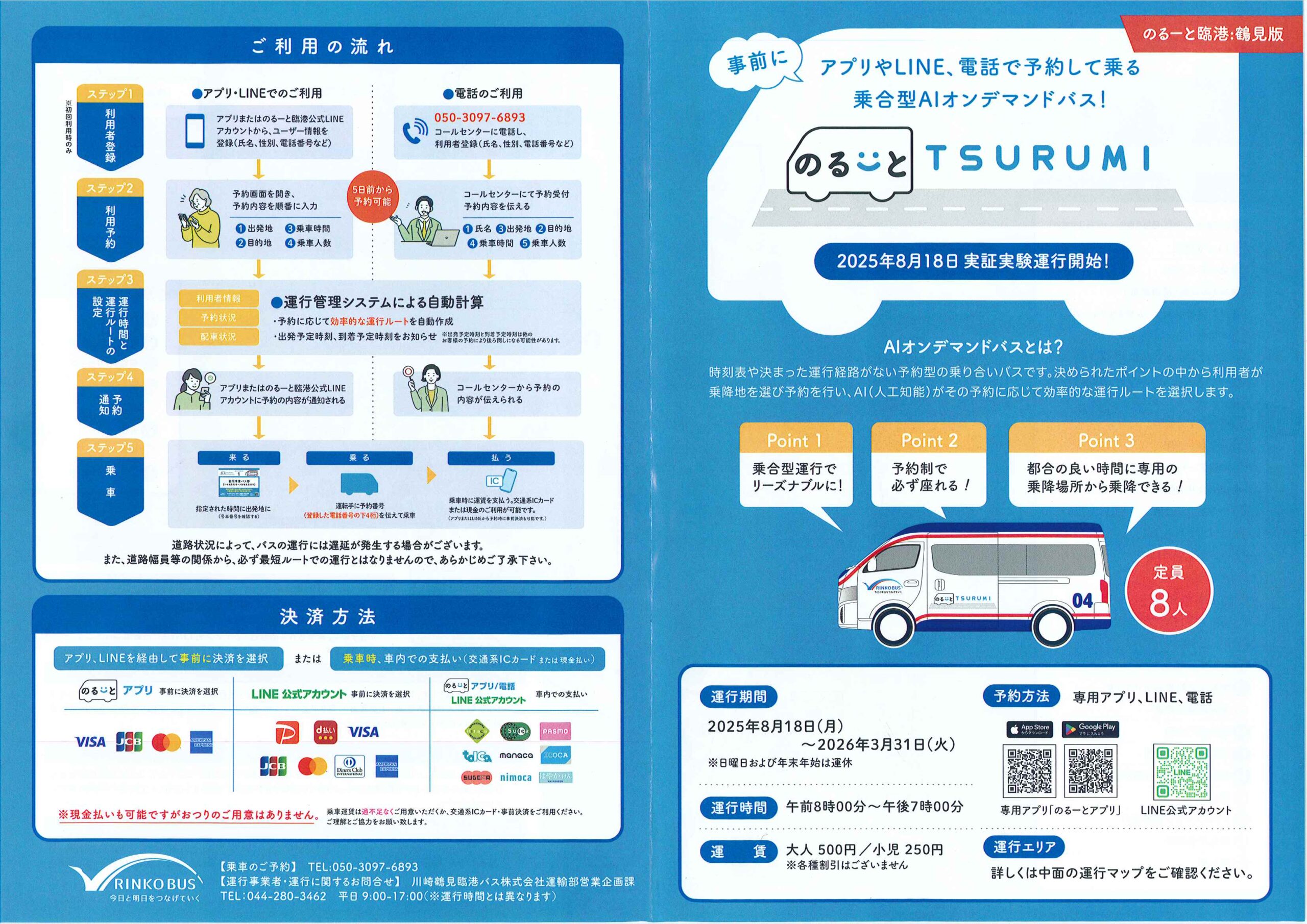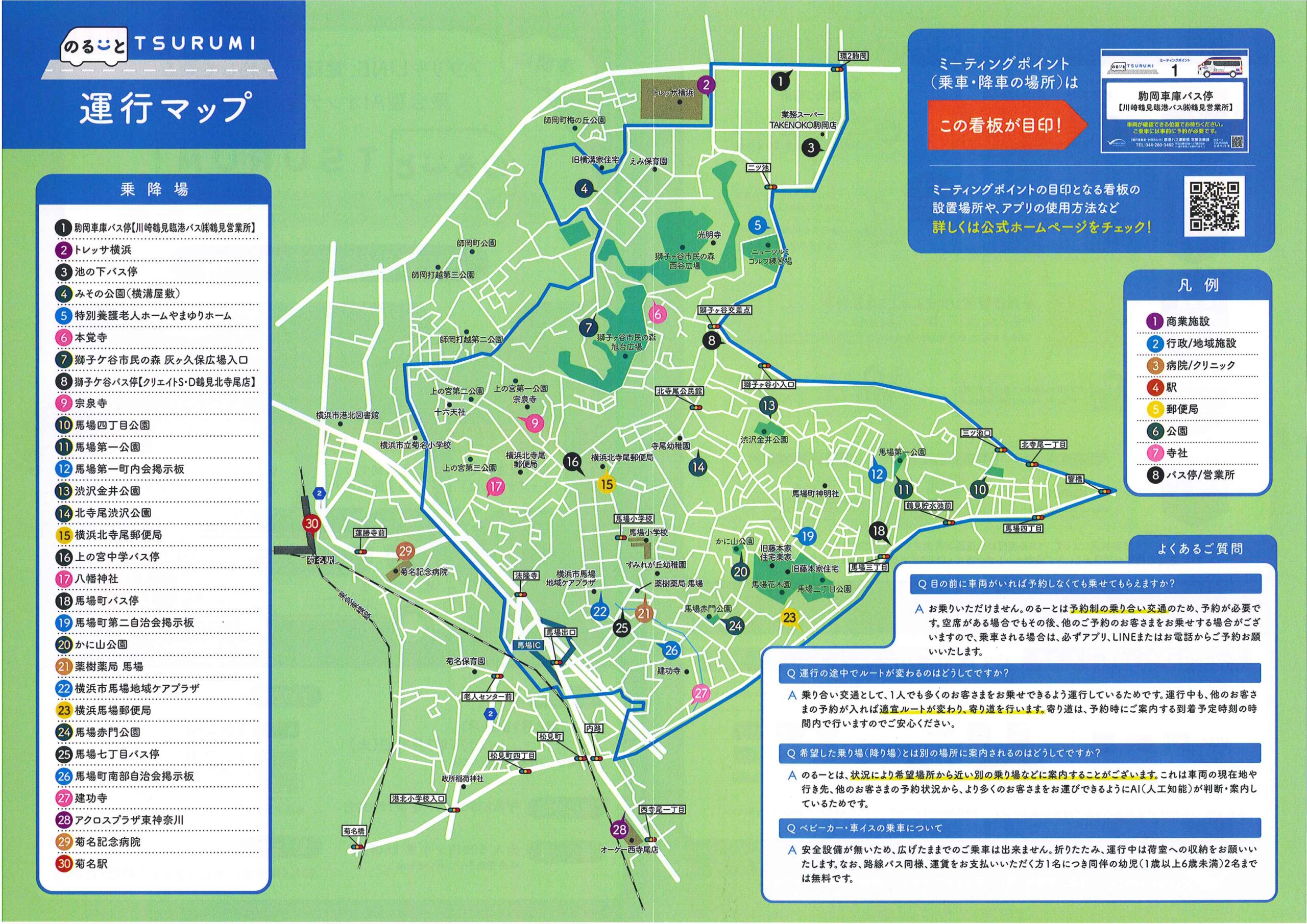 当日は、坂の上にあるやまゆりホームまでの移動手段として、予約型デマンドバス「のるーとTSURUMI」 のご利用が便利です。